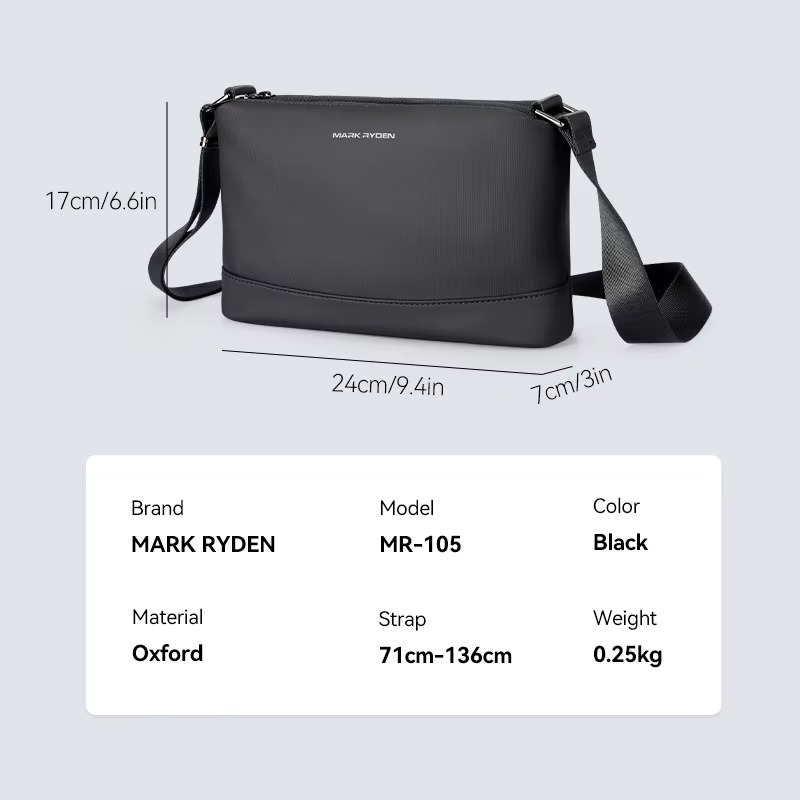 حقيبة الكتف الرجالية مارك رايدن L_MR105 – حقيبة مقاومة للماء بتصميم عصري للاستخدام اليومي والسفر