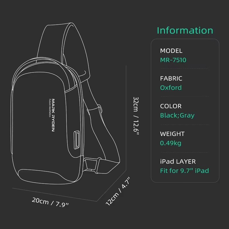 اكتشف المزيج المثالي بين الأسلوب العصري والعملية اليومية مع Mark Ryden MR7510 Sling Backpack. سواء كنت في طريقك للعمل، أو أثناء السفر، أو في يوم عادي غير رسمي، فإن هذه الحقيبة الكروس تحافظ على متعلقاتك منظمة وفي متناول يدك بسهولة.